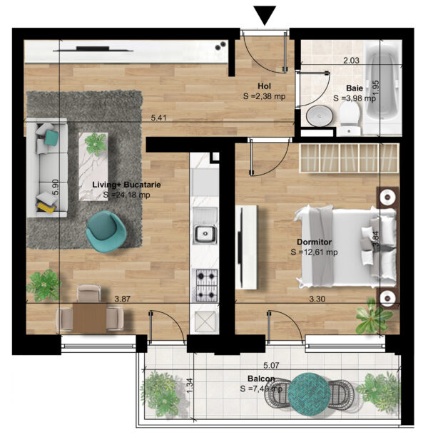 Apartament 2 camere 50.64 mp C1, C3, C4