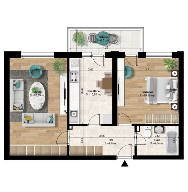 Apartament 2 camere 64.80 mp C1, C3, C4