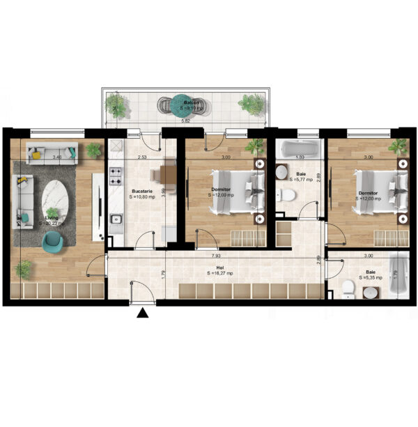 Apartament 3 camere 91.52 mp C1, C3, C4