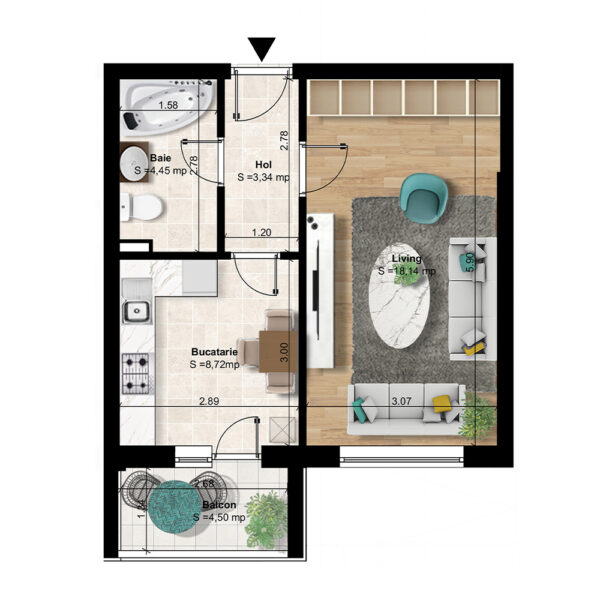 Garsoniera 39.15 mp C1, C3, C4